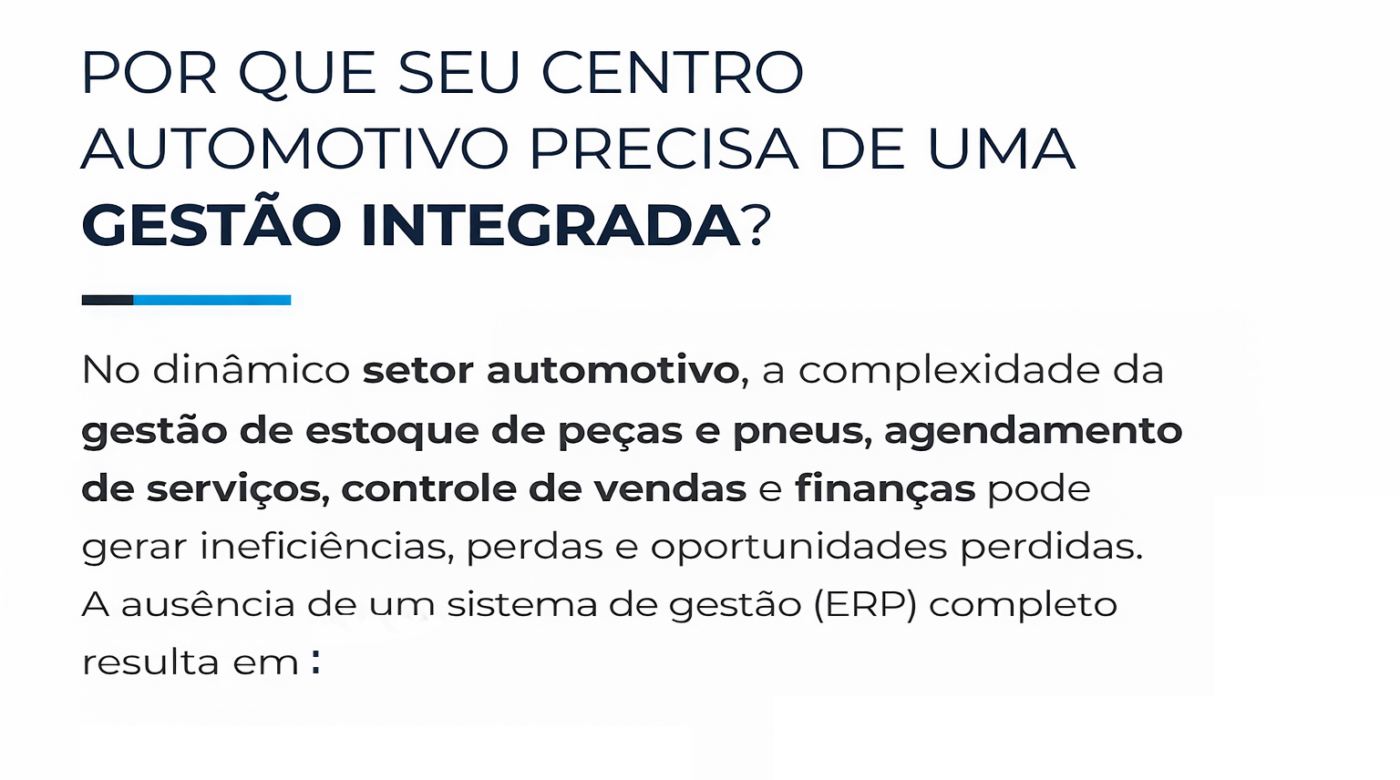 No dinâmico setor automotivo, a complexidade da gestão de estoque de peças e pneus, agendamento de serviços, controle de vendas e finanças pode gerar ineficiências, perdas e oportunidades perdidas.